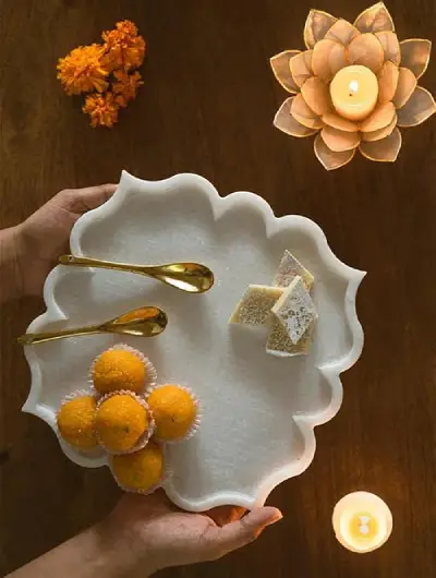 - Made from high-quality white marble