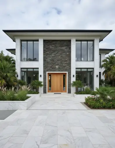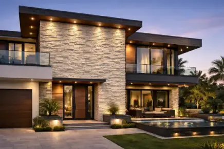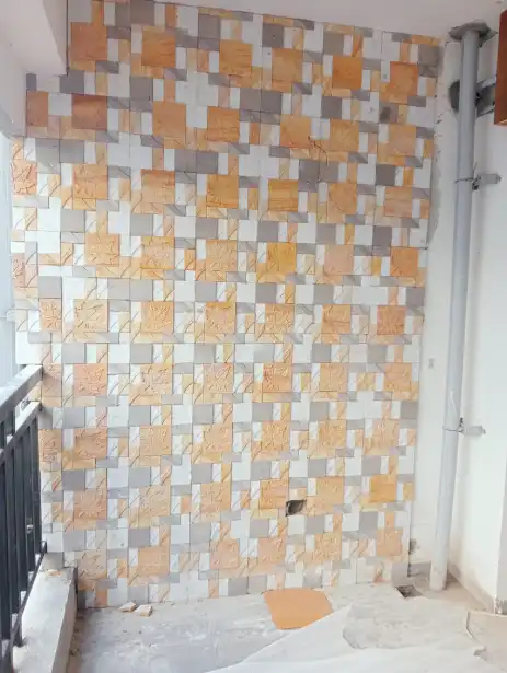 Stone cladding panels are installed using cement mortar or specialized stone adhesives on a prepared wall surface. Professional installation ensures proper alignment and long-lasting durability.