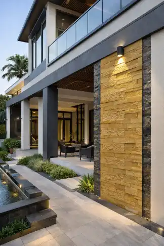 EarthStona sandstone wall cladding is suitable for living room feature walls, luxury villa elevations, staircase walls, hotel lobby walls, entrance walls, and outdoor architectural highlights. Natural sandstone is well known for its strength, durability, and weather resistance, making it an ideal material for both interior wall cladding and exterior elevation design.