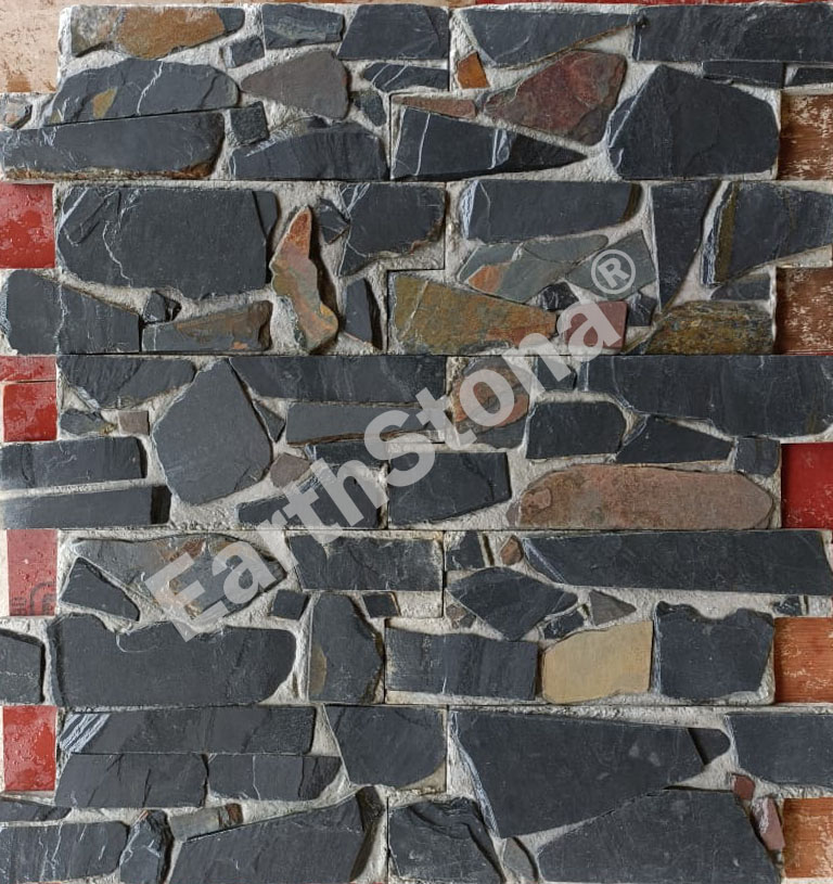 Black Multi Khaag Stacked Stone Cladding - EarthStona
